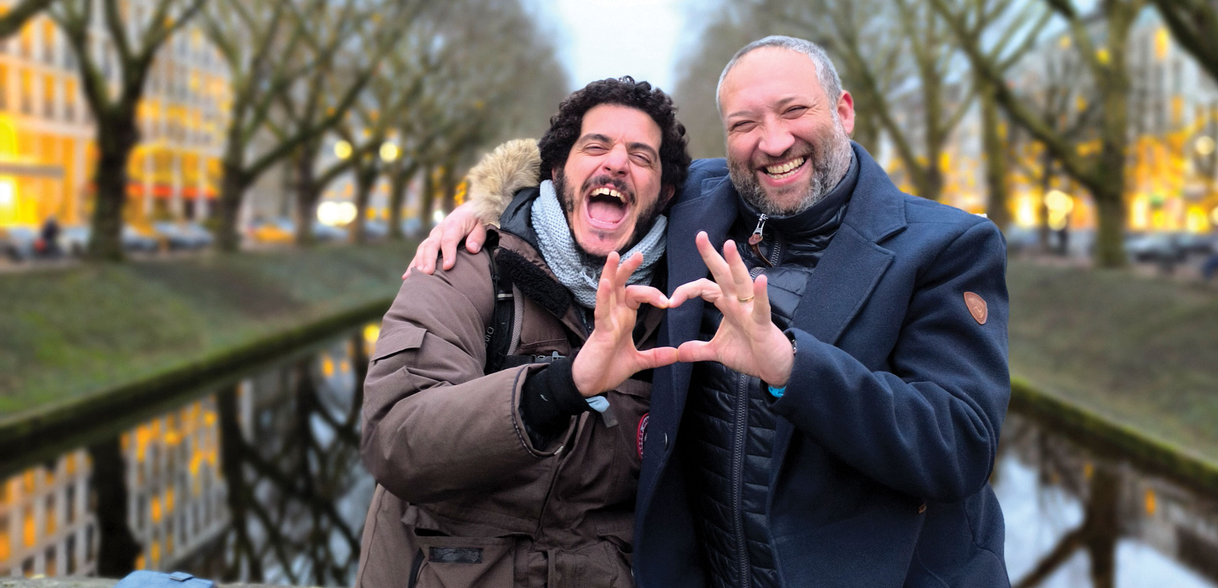 הפרויקט קולות מעזה ומישראל מביא שני קולות אמיצים לשיחה מסביב לשולחן. האקטיביסט הפלסטיני חמזה הווידי, שיצא נגד חמאס ובעקבות כך נעצר, ואיש החינוך הישראלי שי דשבסקי, המוכר בזכות היוזמה I am from Israel – ask me anything, סיפרו על חוויותיהם בפאנלים בפני קהל גרמני. הם פותחים את הדיון לשאלות ישירות מהקהל ויוצרים מרחב שבו אמפתיה חשובה יותר מהתנצחות. ערבי הדיון, שזוכים לעניין רב, מתקיימים מאז ינואר 2025 באופן שוטף בפני קהל של 50-60 איש.